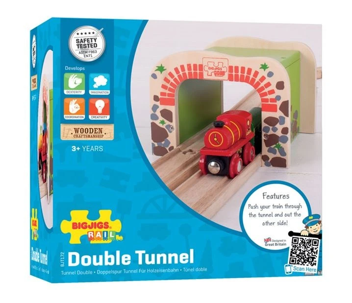 Deze dubbele spoortunnel van Bigjigs is een mooie aanvulling op jouw treinset. De tunnel past natuurlijk bij de Bigjigs treinsets maar ook bij de treinen van de meeste andere bekende merken.
