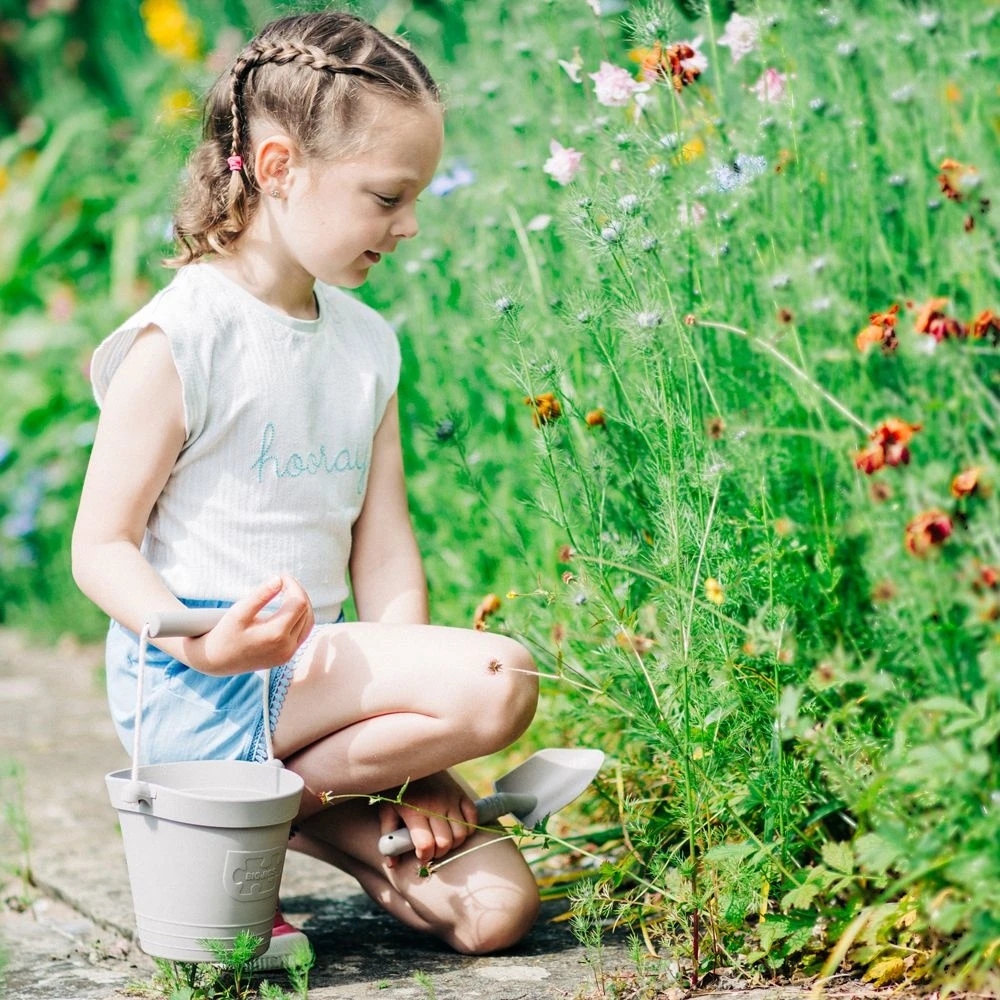 Graaf zandkastelen en plant bloemen met deze stone grey Eco Spade. Deze milieuvriendelijke speelgoedspade is gemaakt van tarwevezel, net als plastic, maar veel vriendelijker voor de planeet. Het is ook super eenvoudig schoon te houden.