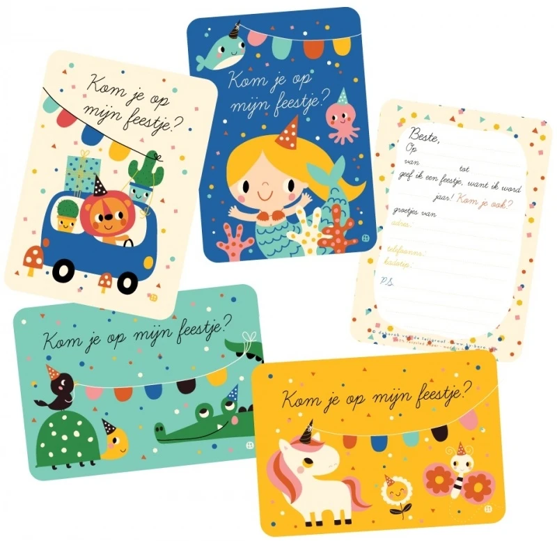 Lief uitnodigingskaartje waarop je op de achterkant alle informatie kunt schrijven. De uitnodigingskaarten zitten per 6 verpakt en zijn milieuvriendelijk gedrukt in Nederland op 100% gerecycled papier.