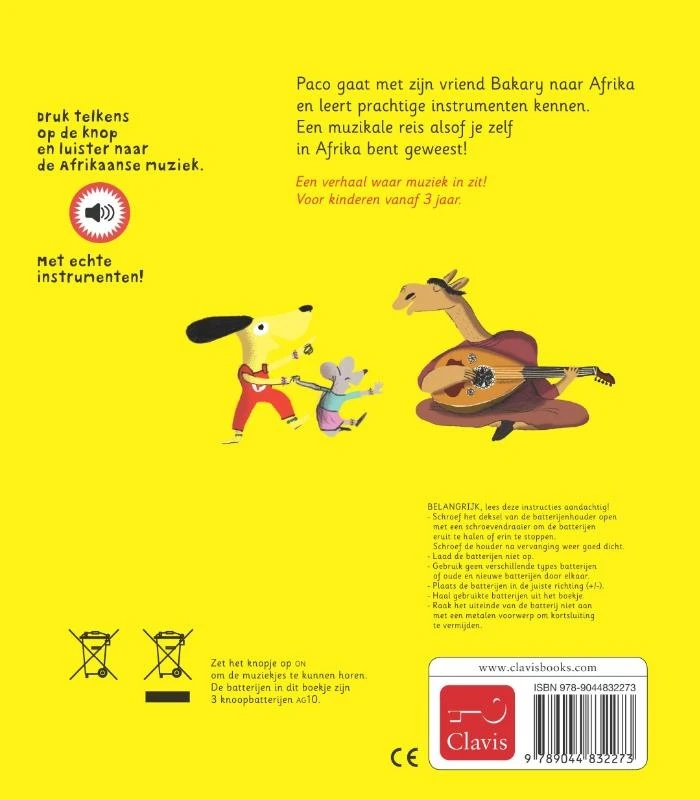 Een verhaal waar muziek in zit! Voor kinderen vanaf 3 jaar. Paco gaat met zijn vriend Bakary naar Afrika en leert prachtige instrumenten kennen. Een muzikale reis alsof je zelf in Afrika bent geweest!