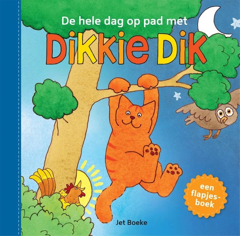 Dit stevige kartonboek over de geliefde rode kater Dikkie Dik, ‘De hele dag op pad met Dikkie Dik’, gaat over dag en nacht en over alle dieren en dingen die je tegen kunt komen. Op elke pagina vind je grote flappen om nog meer van de wereld van Dikkie Dik