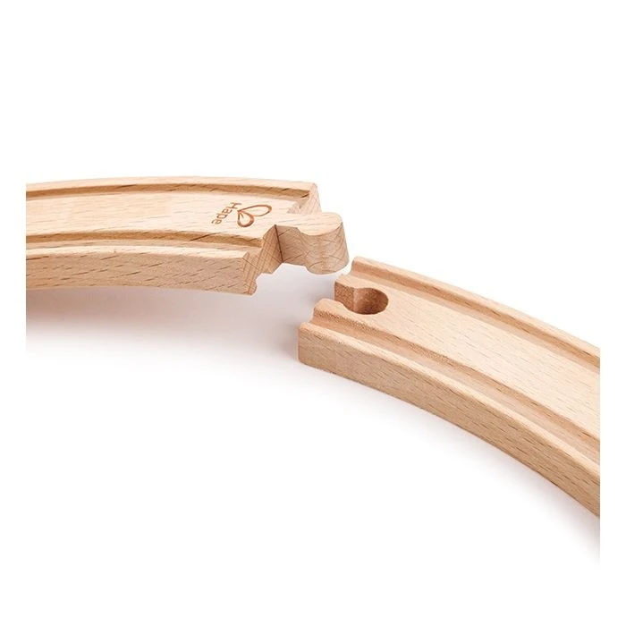 Een mooie uitbreiding voor jouw Hape spoorbaan. Deze set bestaat uit 4 losse gebogen, lange stukken treinbaan.