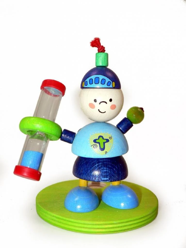 Met deze tandenpoetsklok of tandenpoetszandloper zal je kind met alle plezier zijn of haar tanden poetsen. De zandloper geeft aan hoe lang je moet poetsen. Een stoere ridder in zijn harnas is klaar om de tijd voor het poetsen aan te geven.