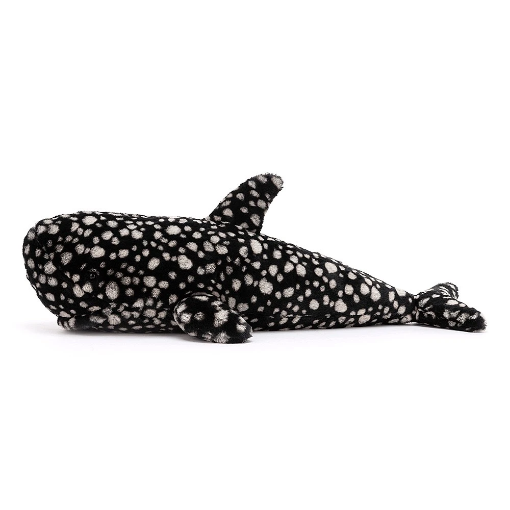 Pebbles whale shark van Jellycat is een imposante verschijning. Zijn vacht is fluweelzacht met witte stippen erop, zo komt hij aan de naam Pebbles. De lengte van deze walvishaai is 60 cm.