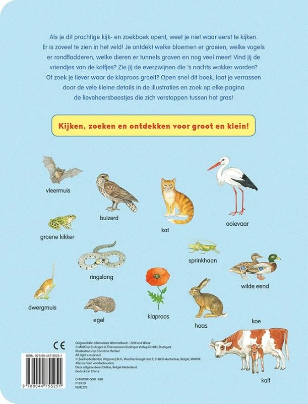 Kijken, zoeken en ontdekken voor groot en klein! Als je dit prachtige kijk- en zoekboek opent, weet je niet waar eerst te kijken. Er is zoveel te zien in het veld! Je ontdekt welke bloemen er groeien, welke vogels er rondfladderen,