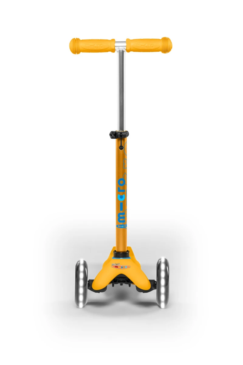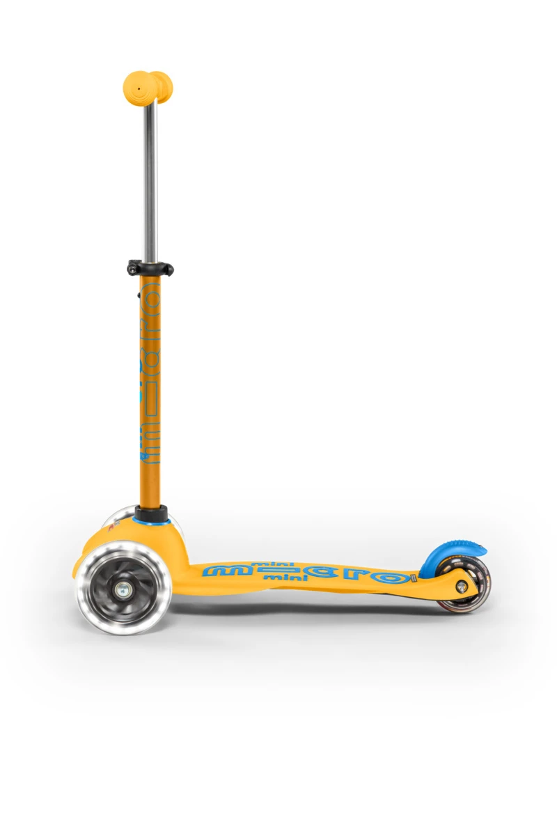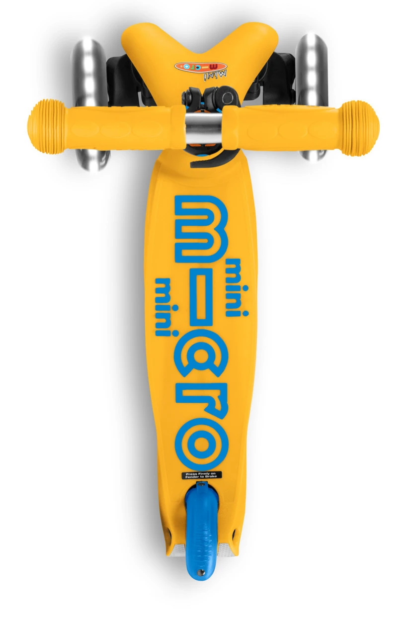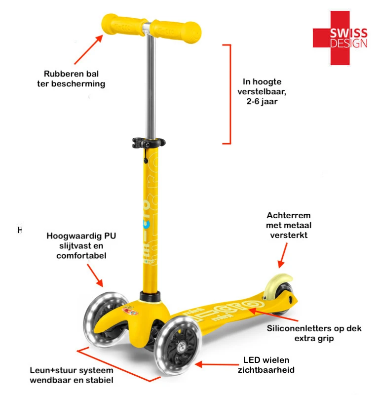 Deze donkergele Mini Micro Deluxe LED is extra veilig door zijn witte LED lampjes, zodat je kind ’s avonds beter zichtbaar is. Kinderen vinden de lampjes natuurlijk vooral heel erg cool.