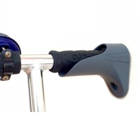 Een slimme haak waaraan je de Micro Step thuis op kunt hangen. Makkelijk te bevestigen. Zo staan de steps niet in de weg in de gang of schuur en blijft alles netjes opgeruimd. Geschikt voor kleine en grote 3 wielige steppen. De haak is grijs gekleurd.