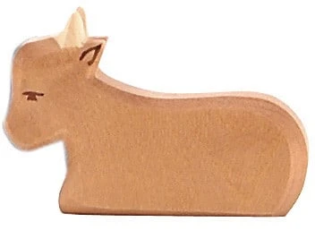 Deze os ligt rustig op de grond en kijkt naar beneden Past bij de kerststal figuren van Ostheimer. Hoogte: 7 cm