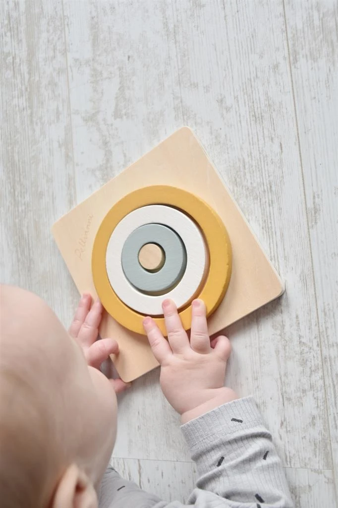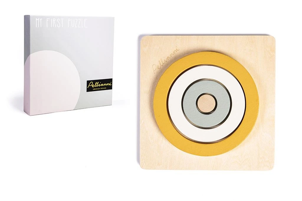 Deze mooie houten puzzel van Pellianni is de eerste puzzel die de kleintjes kunnen maken. Uitgevoerd in een zachte okerkleur en de puzzel wordt geleverd in een mooie bewaardoos. Ook mooi om te geven als kraamcadeau.