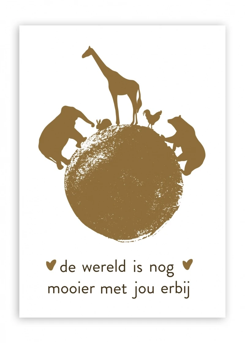 Pepermints Wenskaart de wereld is nog mooier met jou erbij (goud)