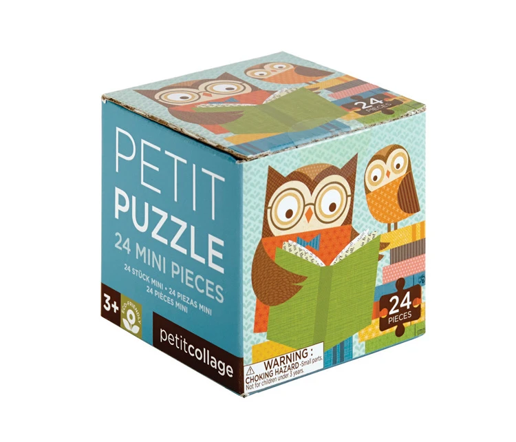 Leuke kleine puzzel van Petit Collage. Deze puzzel lezende beer of lezende uil wordt in een handig klein doosje geleverd, waardoor deze puzzel makkelijk mee te nemen is. De puzzel wordt assorti geleverd (beer of uil).