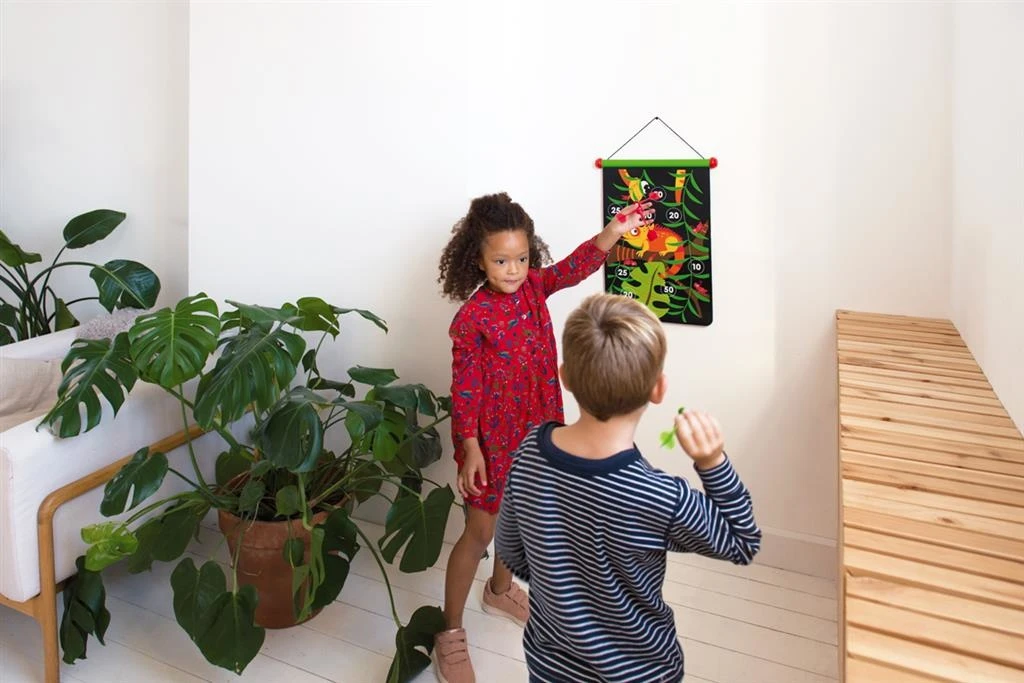Een leuk magnetisch dartspel met aan beide zijden een andere afbeelding. Je kunt het dartspel ophangen aan bijvoorbeeld de muur. Gemakkelijk mee te nemen voor op reis of vakantie. De pijltjes zijn magnetisch dus ook geschikt voor de kleine kinderen.