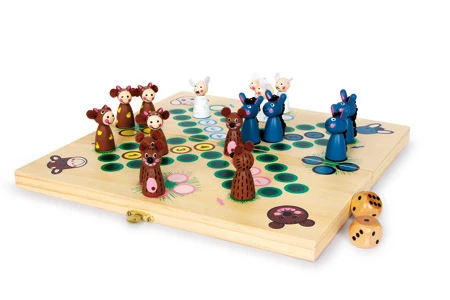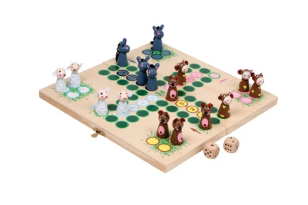 Het bekende ludo spel in een mooie houten uitvoering. De pionnen zijn in de vorm van een dier. Gemakkelijk mee te nemen en op te bergen door de handige houten opbergkist.