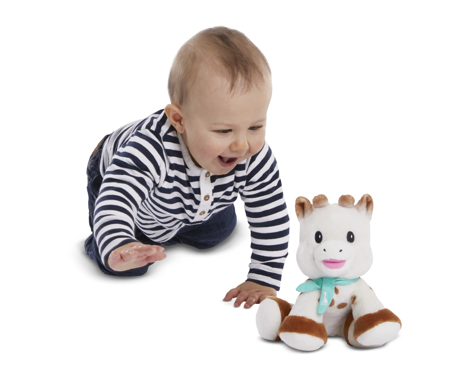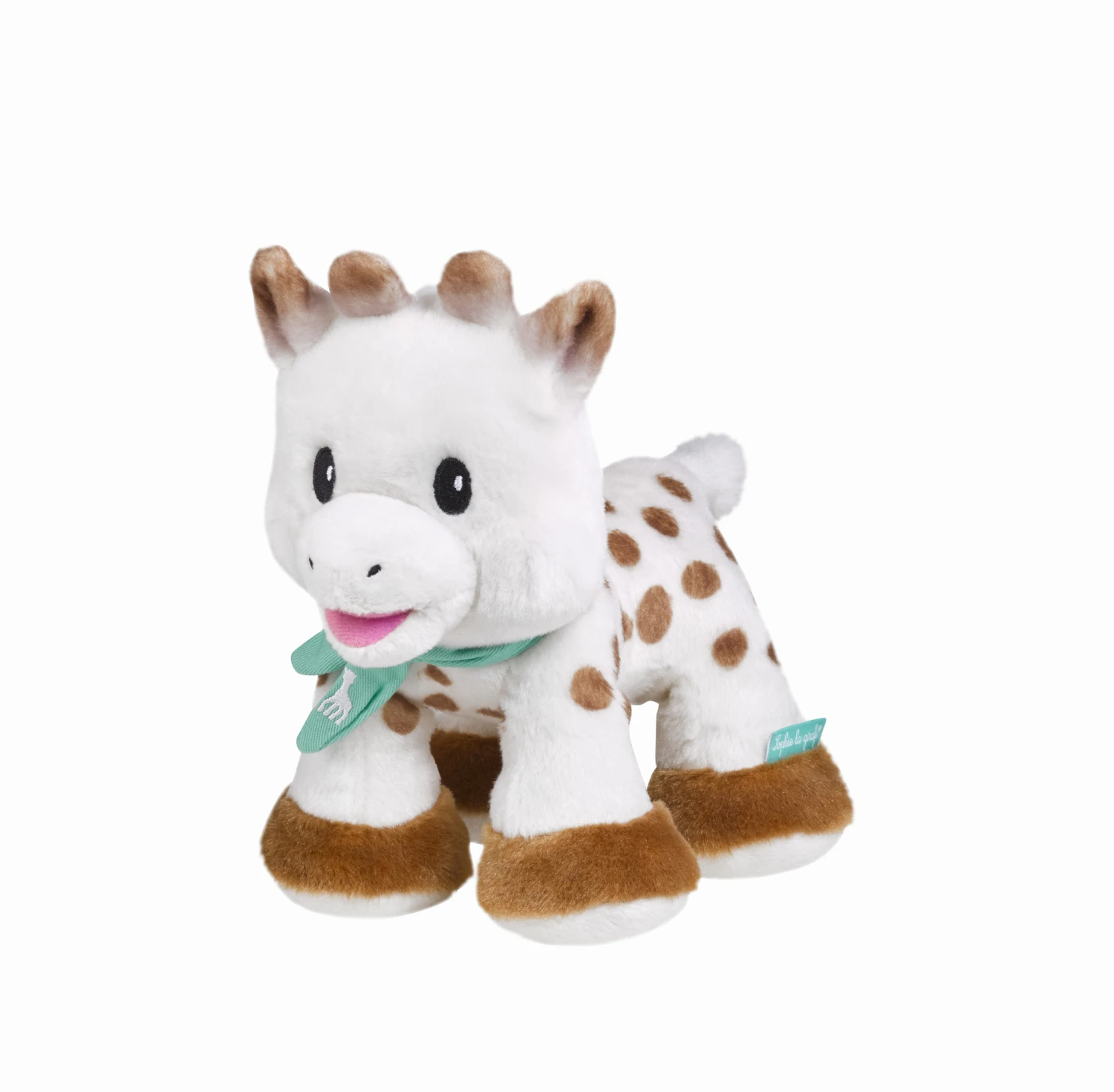 Een superzachte Sophie de Giraf knuffel. De knuffel is 20 cm hoog en kan dankzij de speciale vulling in de poten staan en ook zitten. De knuffel is wasbaar op 30 graden.