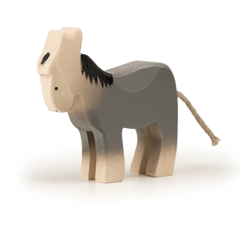 Deze ezel van Trauffer staat rechtop en is met de hand gemaakt van lindehout in Zwitserland, de gebruikte verf is vrij van chemicaliën. De ezel is robuust genoeg om mee te spelen. Afmeting: 11x8x3 cm.