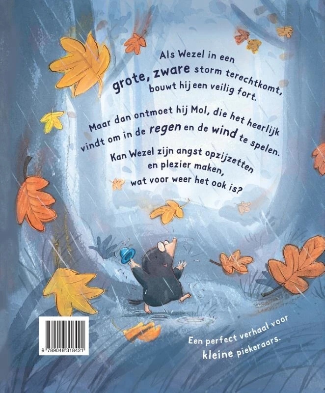 Als Wezel in een grote, zware storm terechtkomt, bouwt hij een veilig fort. Maar dan ontmoet hij Mol, die het heerlijk vindt om in de regen en de wind te spelen. Kan Wezel zijn angst opzij zetten en plezier maken, wat voor weer het ook is?