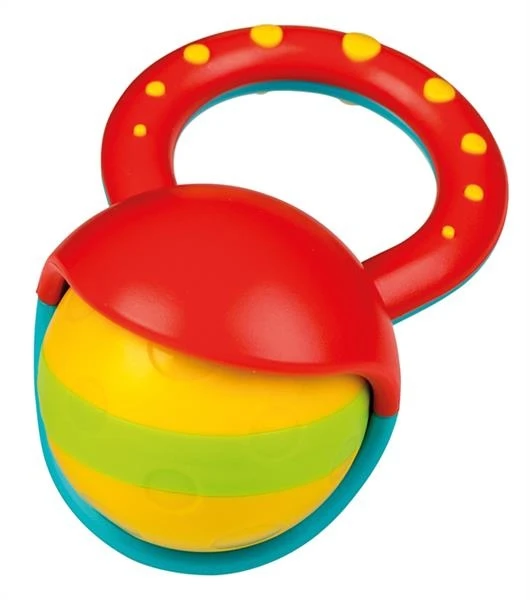 Deze vrolijke roller wordt met het handvat over de vloer gerold of met de hand gedraaid. De combinatie van beweging, spannende kleurpatronen en grappig geluid werpt een magische betovering op elke baby of peuter.